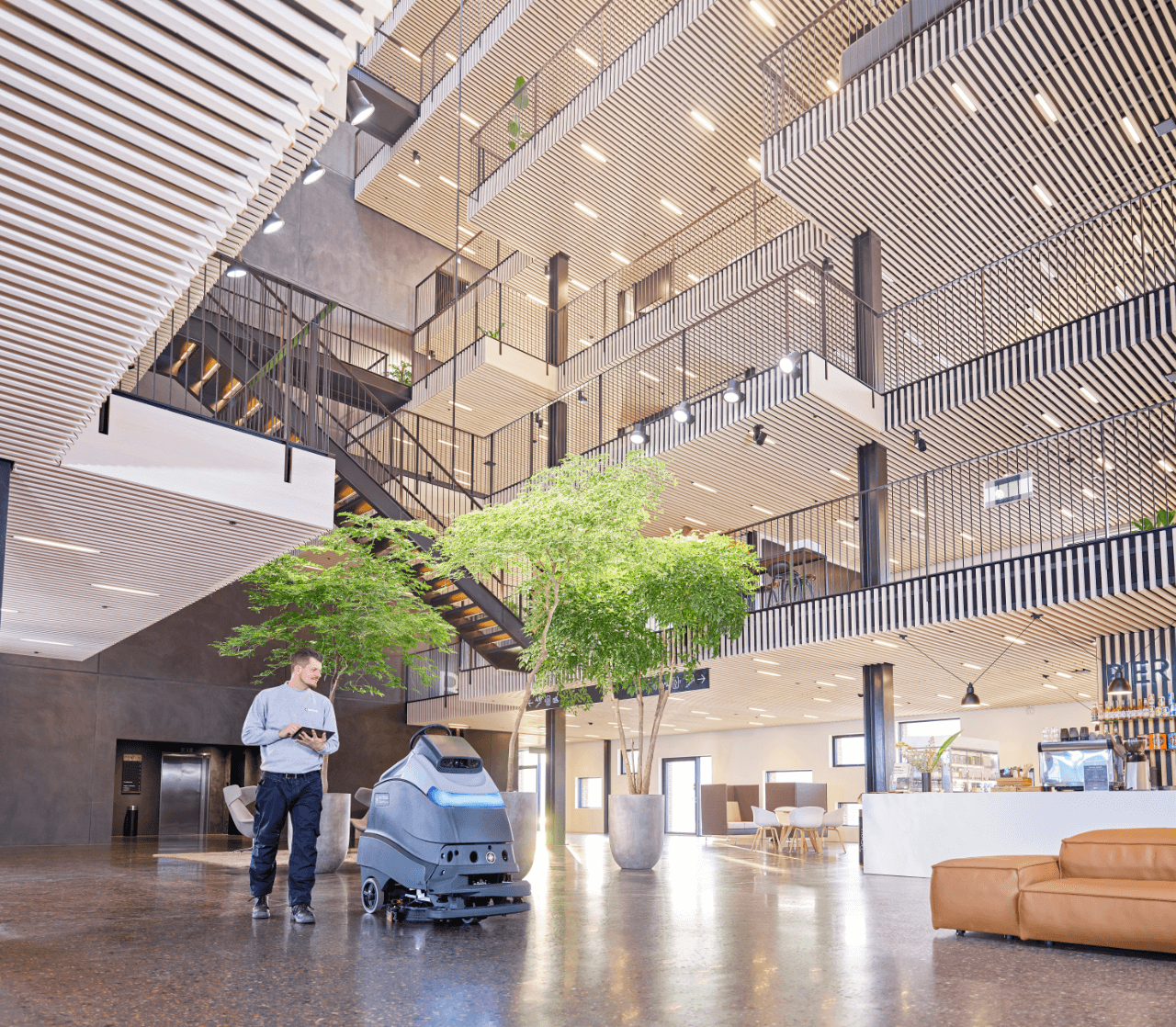 A Nilfisk Liberty SC50 libera sua equipe para trabalhos mais importantes que exigem a presença humana, enquanto limpa de forma autônoma por até seis horas com uma única carga. Ela mapeia automaticamente os caminhos de limpeza mais eficientes, rastreando-os sempre. Você pode limpar mais espaços, em menos tempo e a um custo menor todos os dias. Além disso, você receberá uma mensagem de texto quando for a hora da Liberty SC50 passar para a próxima tarefa, para que você não precise lidar com tempo de inatividade desnecessário.